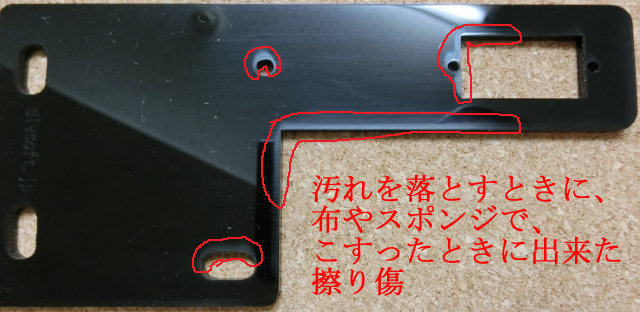 はがす際に出来たものや、アクリルパーツから汚れを取ろうと磨く際に出来たものです。