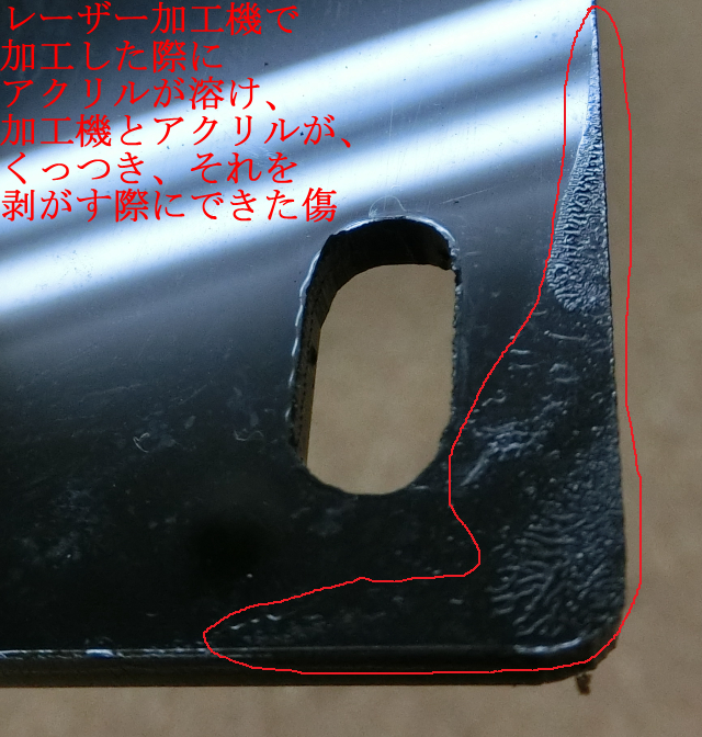 ↑レーザー加工機から剥がす際に出来た、傷です。